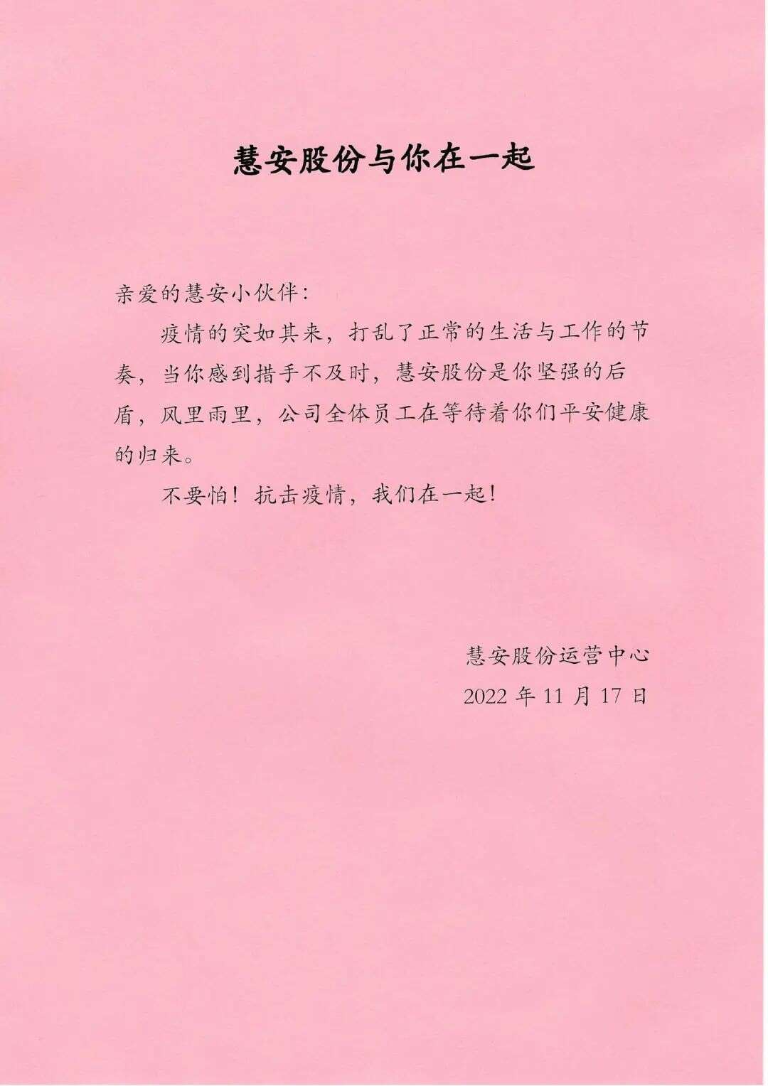 患难见真情,慧安不会抛弃每一位员工,在疫情危险中我们在一起!
