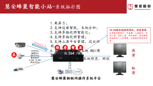慧安蜂巢AI智能小站是慧安股份面向边缘应用场景的智能边缘计算产品,具有超强计算性能、算力动态扩展、环境适应性强、易于维护和支持云边协同等特点,可以在边缘环境广泛部署,满足在安防、交通、社区、园区、商场、超市等复杂环境区域的应用需求。