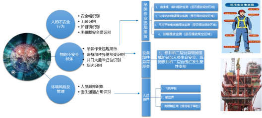 通过智能算法的建设和应用,有效支持智能安全模块的运营。从人的不安全性,物的不安全状态和环境风险及管理角度,提升现场安全管理智能化水平