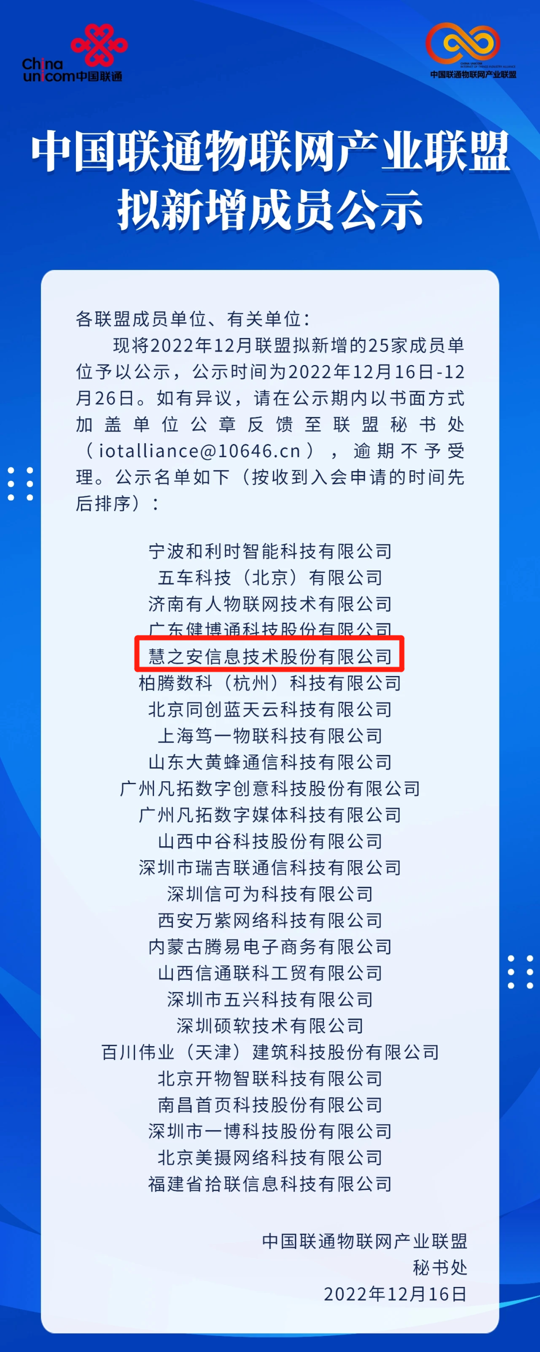 祝贺 | 慧安股份成为中国联通物联网产业联盟会员单位