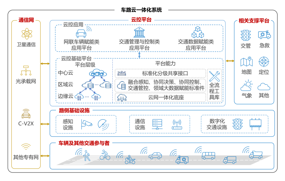 车路云一体化系统是通过新一代信息与通信技术将人、车、路、云的物理空间、信息空间融合为一体,基于系统协同感知、决策与控制,实现智能网联汽车交通系统安全、节能、舒适及高效运行的信息物理系统,具有标准化接入能力、共性化基础能力、开放化共享能力、集约化增效能力和模式可复制能力的优势。