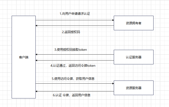 (4)、认证服务器对授权码进行身份校验,通过后发放令牌给客户端(授权码只能使用一次)。