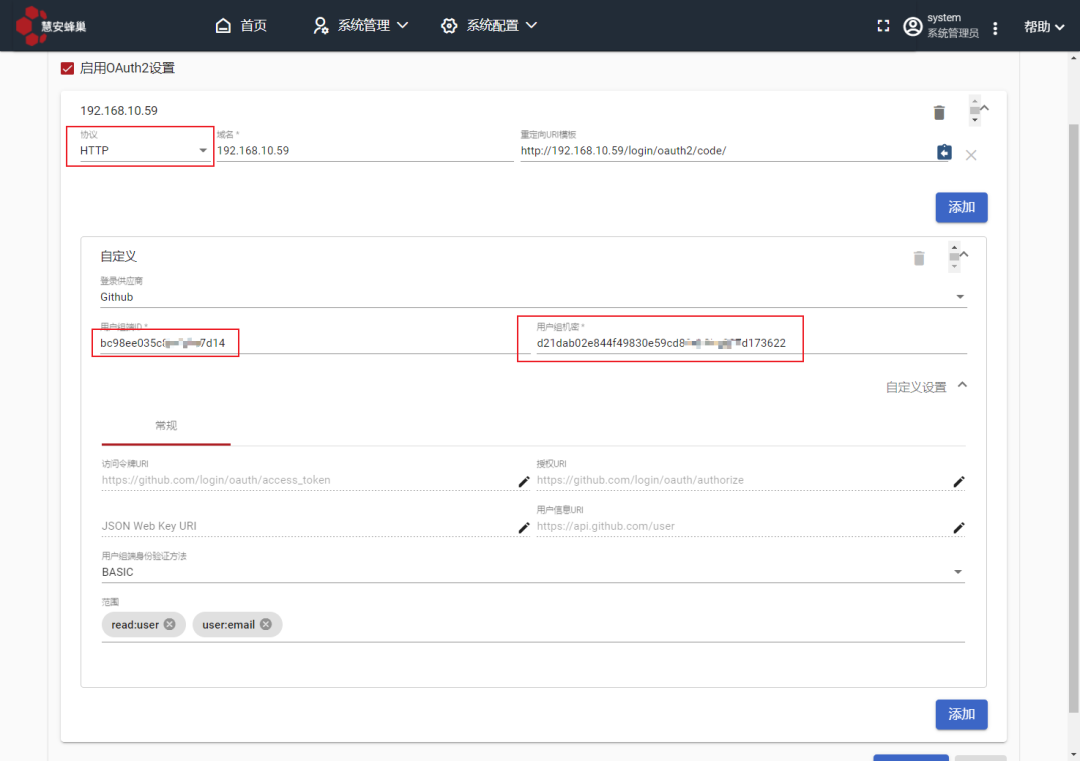 OAuth2在慧安蜂巢物联网操作系统平台中的应用,采用的是让用户在系统管理员中自行配置的方式,目前系统适配Github,我们使用Github为案例。