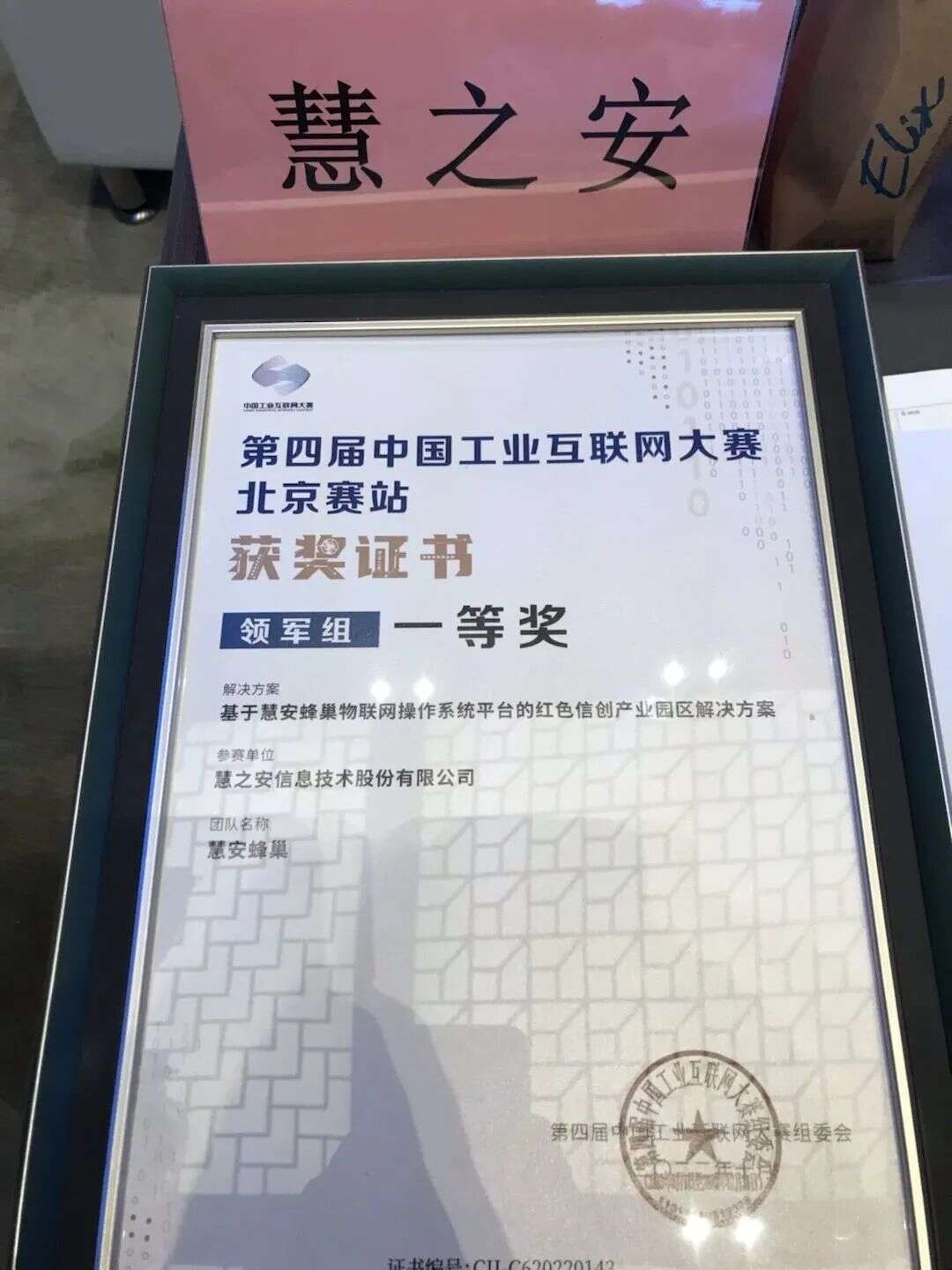 大赛作为国内最高规格的工业互联网领域赛事之一, 首次设立北京赛站,赛站由石景山区人民政府、北京市经济和信息化局、北京市工商业联合会、国家工业信息安全发展研究中心主办,石景山区经济和信息化局、中关村软件园公司、中关村工业互联网公司承办,中关村发展集团、北方工业大学特别支持。2022年11月,以“推进产业园区创新应用的解决方案”为赛题方向的北京站决赛于石景山区圆满落幕,慧安股份凭借“基于慧安蜂巢物联网操作系统平台的红色信创产业园区解决方案”获得领军组第一名的优异成绩。