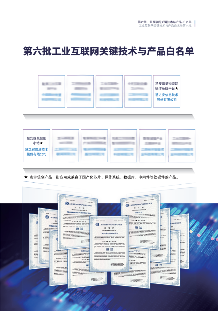 此次入选《工业互联网关键技术与产品白名单》表明慧安蜂巢产品成熟度已经达到市场前列水平,也是对慧安蜂巢系列产品信创能力的认可。