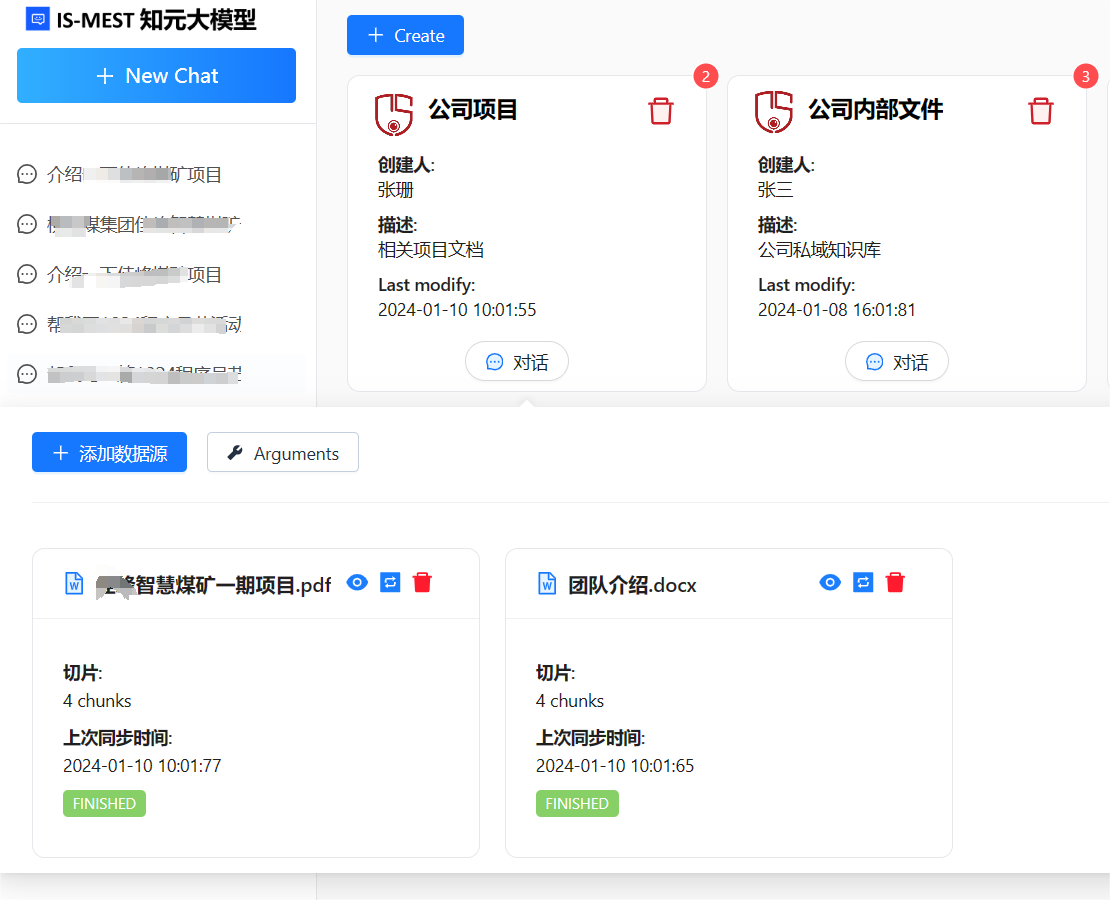 选择“公司项目”知识库进行问答