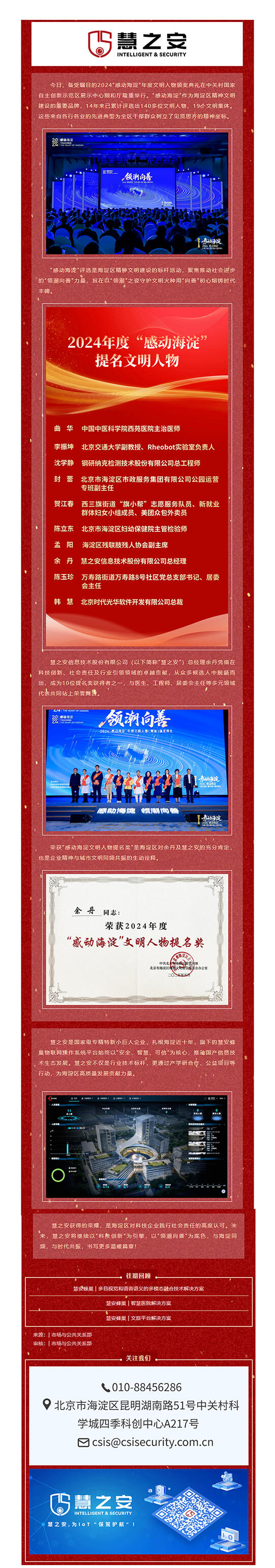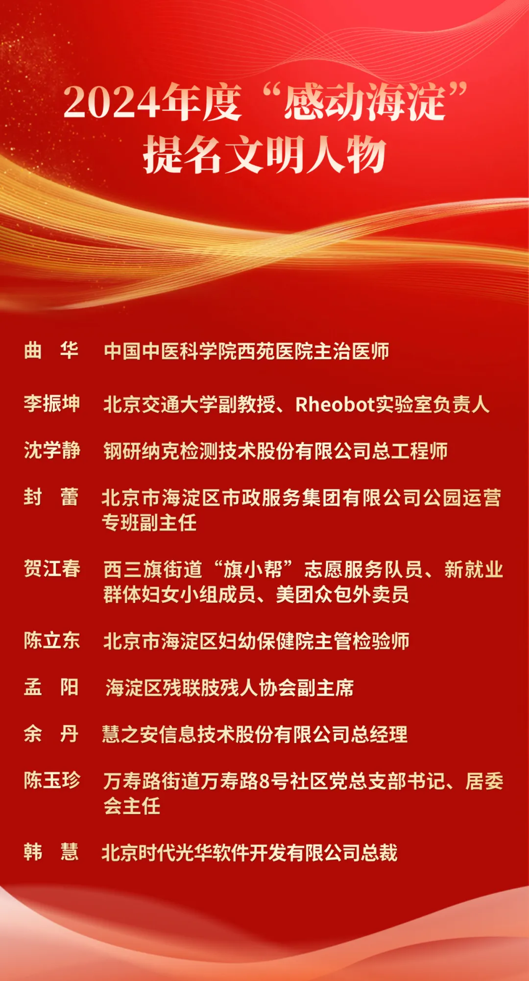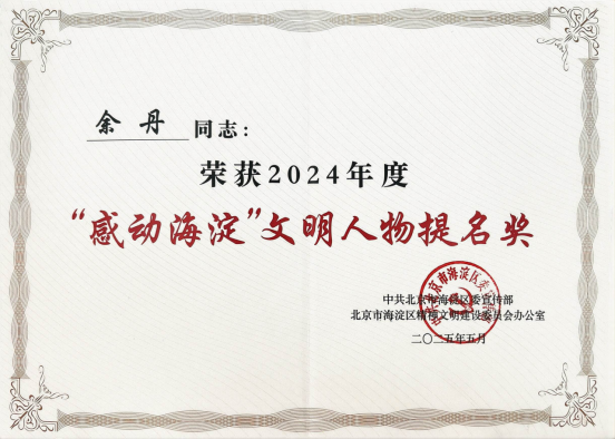 热烈祝贺慧之安总经理余丹荣获2024“感动海淀”文明人物提名奖