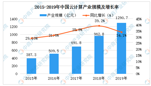 目前,中国云计算市场处于快速发展阶段,容器、微服务等技术的不断成熟,推动着云计算的变革。随着云计算的应用场景的不断拓展,云计算的应用已深入达到政府、金融、工业、交通、物流等传统行业。当前,中国的云计算市场规模整体规模较小,与全球市场规模仍存在一定的差距。数据显示,2018年全球云计算市场规模突破3000亿元。伴随着企业逐渐倾向于追求数字化商业战略,传统IT服务向云端服务转变,全球云计算市场规模将进一步增长。在国内,2019年中国云计算产业市场规模将超1000亿元左右。