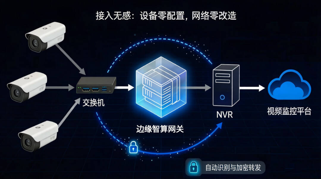 不过,我们的边缘智算网关正是为此而生。它不仅是安全设备,更是一套“无感化”安全接入与赋能体系,旨在用最简单无感的方式,为您的存量视频与物联网络穿上隐形铠甲。