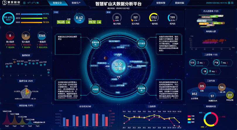 基于慧安蜂巢物联网操作系统平台,通过一张安全高速融合通信网,将智能装备与控制系统综合贯通,集成接入矿山各业务子系统,应用智慧矿山操控系统展示呈现;借助慧安蜂巢物联网操作系统平台实现设备接入管理与监控运维,数据流转管理与统计分析,提供安全生产、经营等智能化应用服务。通过与人工智能、工业物联网、云计算、大数据、智能终端、5G通信、智能装备等与佳峰煤矿现代煤炭开发利用深度融合,形成全面感知、实时互联、分析决策、自主学习、动态预测、协同控制的智能操控系统。