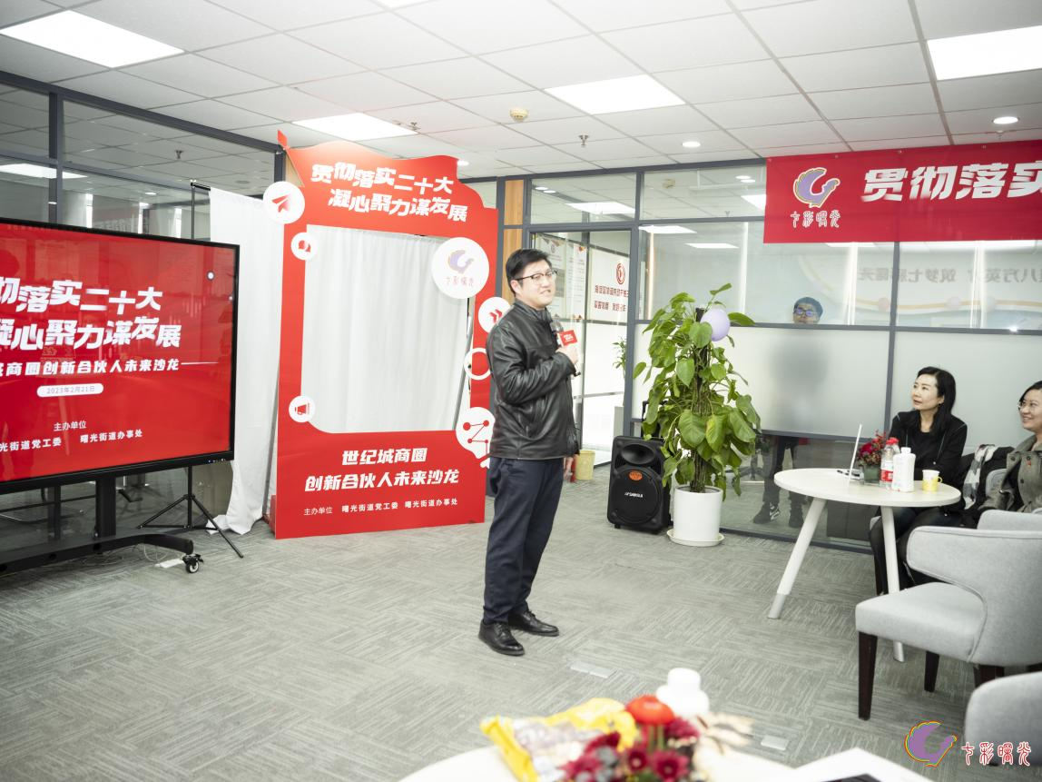 春回大地,万物复苏。2月21日,曙光街道“世纪城商圈创新合伙人未来沙龙”在七彩曙光人才会客厅举行。街道党工委书记胡宏宇、办事处副主任李萱,中关村机器人产业创新发展中心、中关村四季科创中心、北京江民新科技术有限公司、大唐环境产业集团股份有限公司、慧之安信息技术股份有限公司等14家地区企业代表参加活动,学习贯彻落实党的二十大精神,共商曙光经济发展大计。