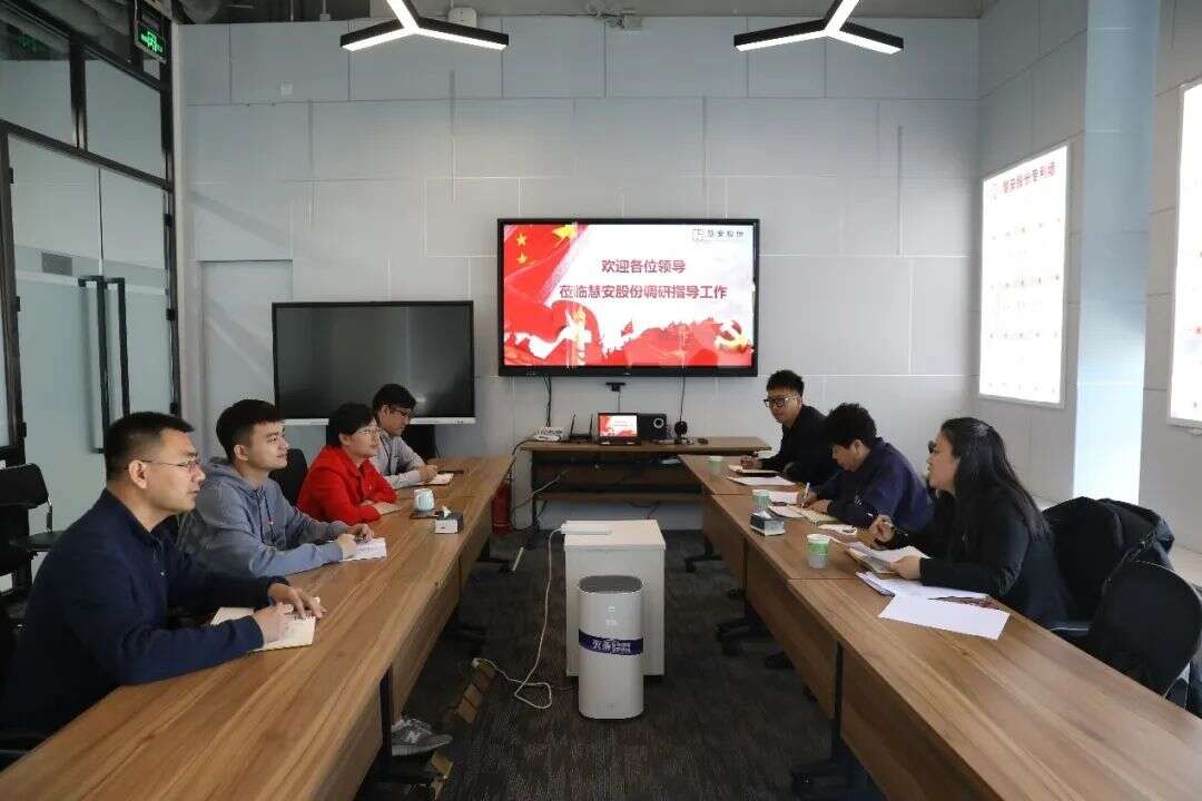 这是一次全面、细致的调研,上级党组织希望对我们公司的各个方面进行了深入详细的了解、考察和评估。会上首先由慧安股份总裁余丹对公司的基本信息、经营状况、企业文化、员工思想状况、党建工作进展等各方面进行了详细的汇报,然后由上级党组织进行民营企业成立党支部的政策宣读和讲解,最后由慧安股份与会代表和上级党组织一起探讨了民营企业成立党支部的意义和必要性。