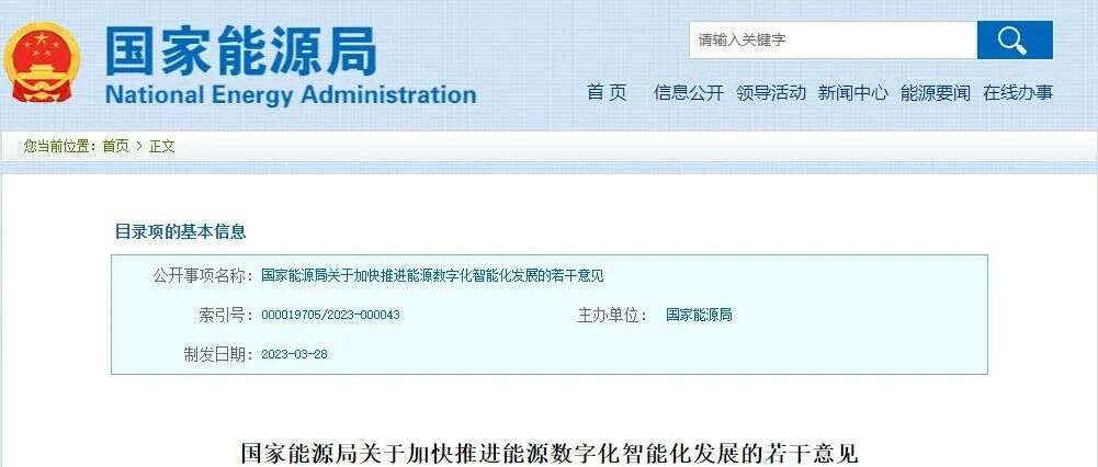 3月28日,国家能源局发布《关于加快推进能源数字化智能化发展的若干意见》(简称《意见》)。