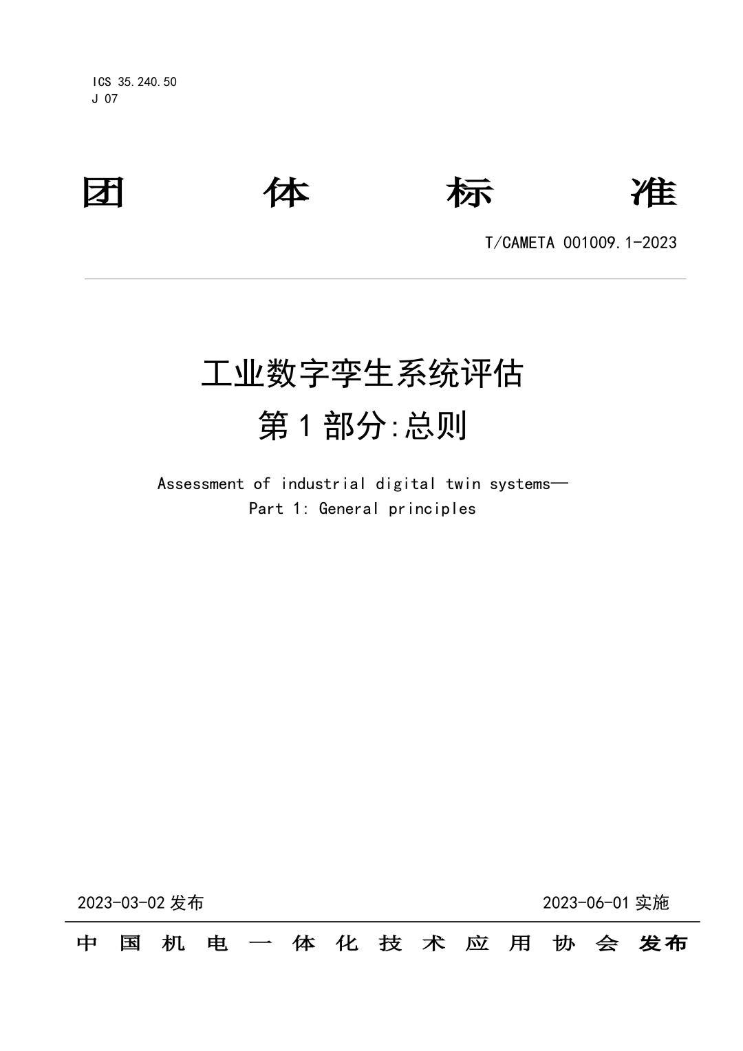 近期,中国机电一体化技术应用协会发布了T/CAMETA 001009.1—2023《工业数字孪生系统评估 第1部分:总则》,慧安股份作为起草单位参与了此次标准建设工作。