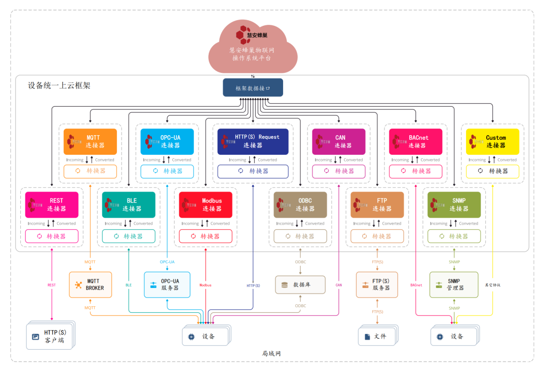 慧安蜂巢-握杼工业设备统一上云框架是一款能够灵活、高效地将各类异构设备接入到慧安蜂巢物联网操作系统平台的框架应用,旨在帮助企业提升设备管理与调度的效率,同时为各类辅助运营决策的平台上层应用提供完善的数据支撑。