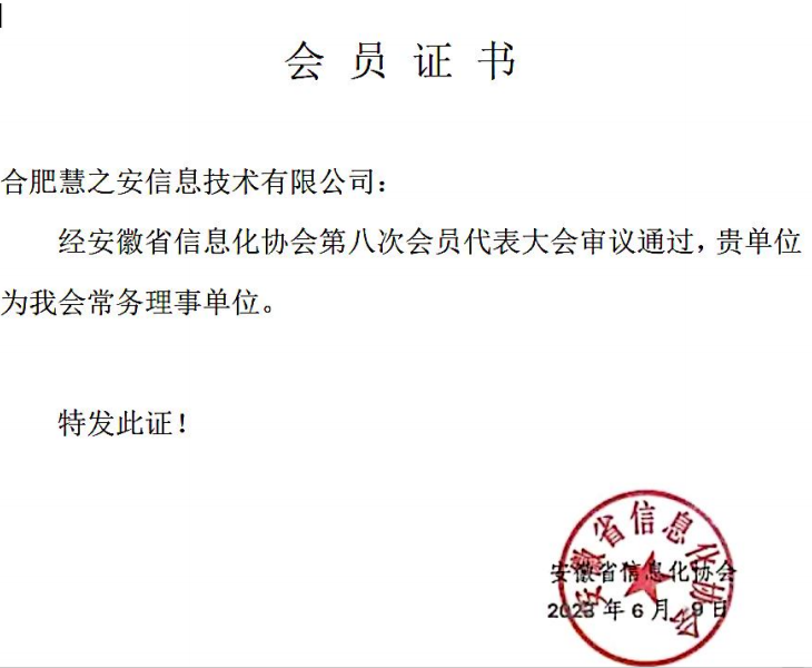 信息技术发展日新月异,慧安股份将伴随协会的发展见证社会信息化发展的历程。作为协会的一份子,坚信协会的发展宗旨,要始终高举信息化发展大旗,继续为安徽省信息化的建设发展添砖加瓦。
