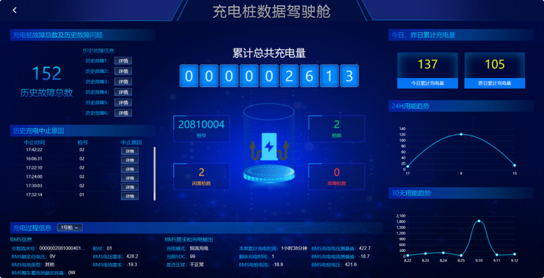智慧充电桩可以自动检测故障并将信息传送给设备管理系统。包括硬件故障、通信问题等。及时检测问题可以减少服务中断时间。一旦检测到故障,系统可以自动发送通知给维修团队,以便迅速解决问题。这有助于保持充电桩的可用性。