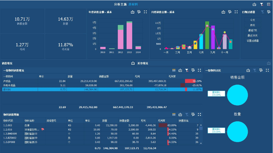 生产统计管理:生产统计管理可以对生产运行情况进行统计调查、统计分析,提供数据资料、实行统计监督。对月度生产经营、计划产量的完成情况进行统计分析,实现日统计、旬分析、月总结,展示原材料、产品产量、投入产出、技经指标情况。为生产经营管理、科学决策等提供参考。