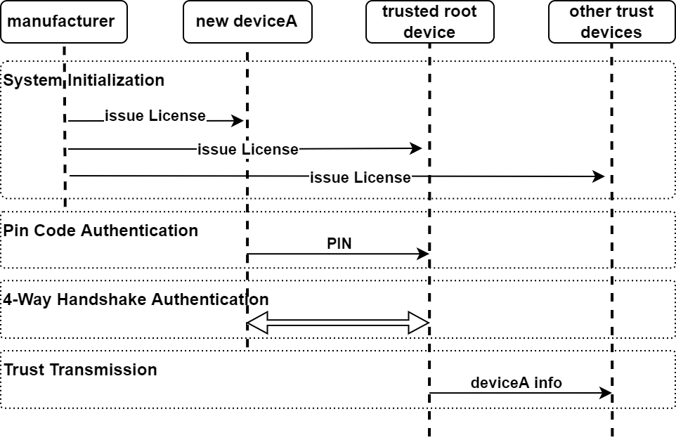 与物联网场景中常见的认证方案主要包含两种:代理认证方案与传统方案。代理方案需要新设备将自己的信息发布至代理服务器,再由其他设备订阅。而传统方案通常需要新设备与可信设备依次握手。
