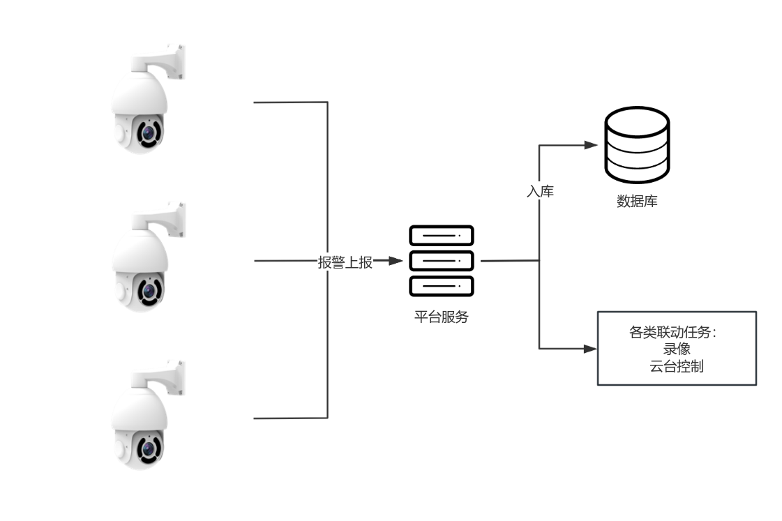 具体来说,这种传统的报警联动方式通常只能针对同一安防系统内的设备进行触发,例如当某个摄像头侦测到异常行为时,可能只能触发同一系统内的另一摄像头进行录像或报警灯闪烁。