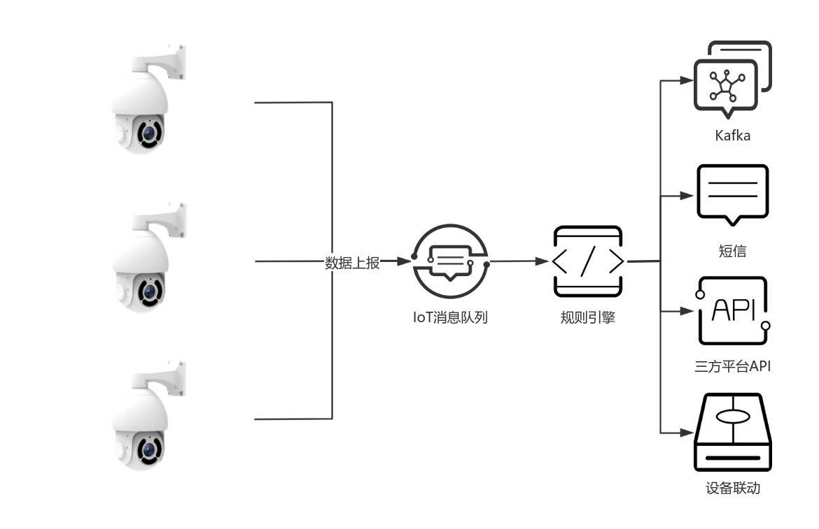 目前,安防设备在不接入规则引擎的情况下,其数据流向显得尤为单一且固定。这意味着一旦数据产生,它只能按照预设的路径进行传输和处理,缺乏足够的灵活性和应变能力。虽然许多安防平台都配置了报警联动能力,但这种联动往往受限于系统内部的特定代码逻辑,使得其应用范围相对狭窄。