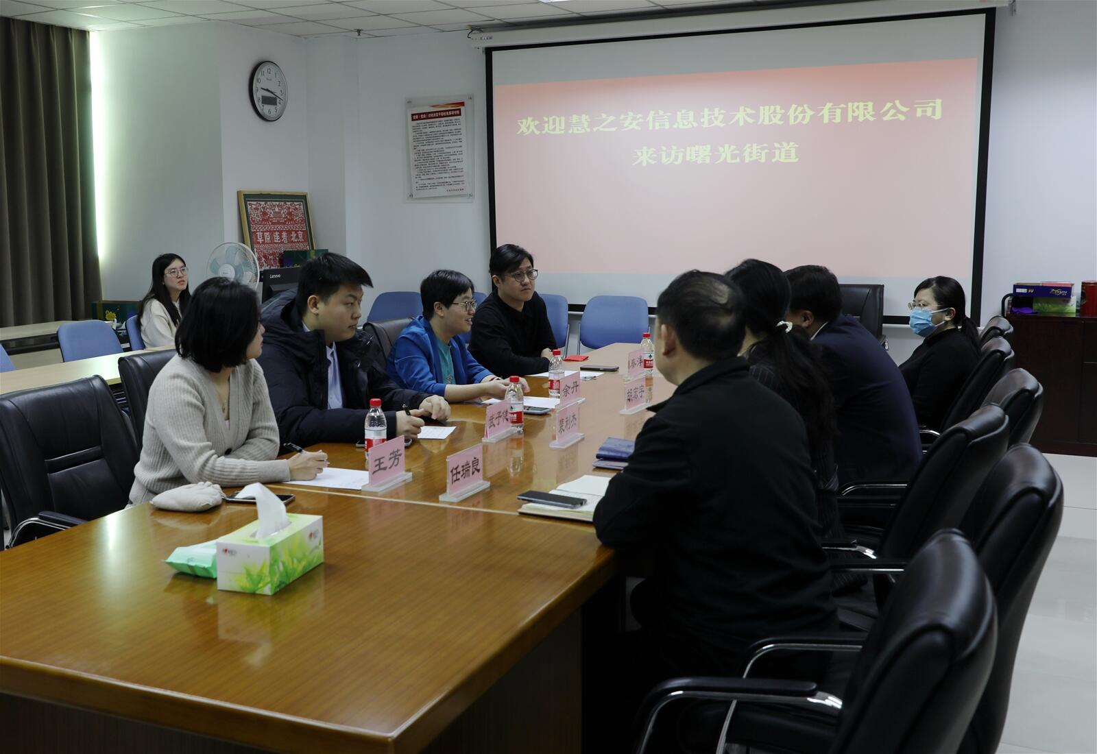 在随后的交流环节中,双方围绕当前经济形势、企业发展战略以及地区经济合作等重要议题展开了深入而富有成效的探讨。双方一致认为,在当前复杂多变的经济环境下,企业与政府之间的紧密合作至关重要。慧之安将充分发挥其在信息技术领域的专业优势,为地区经济的繁荣贡献自己的力量;曙光街道则将继续优化营商环境,为企业提供更加优质、高效的服务与支持。