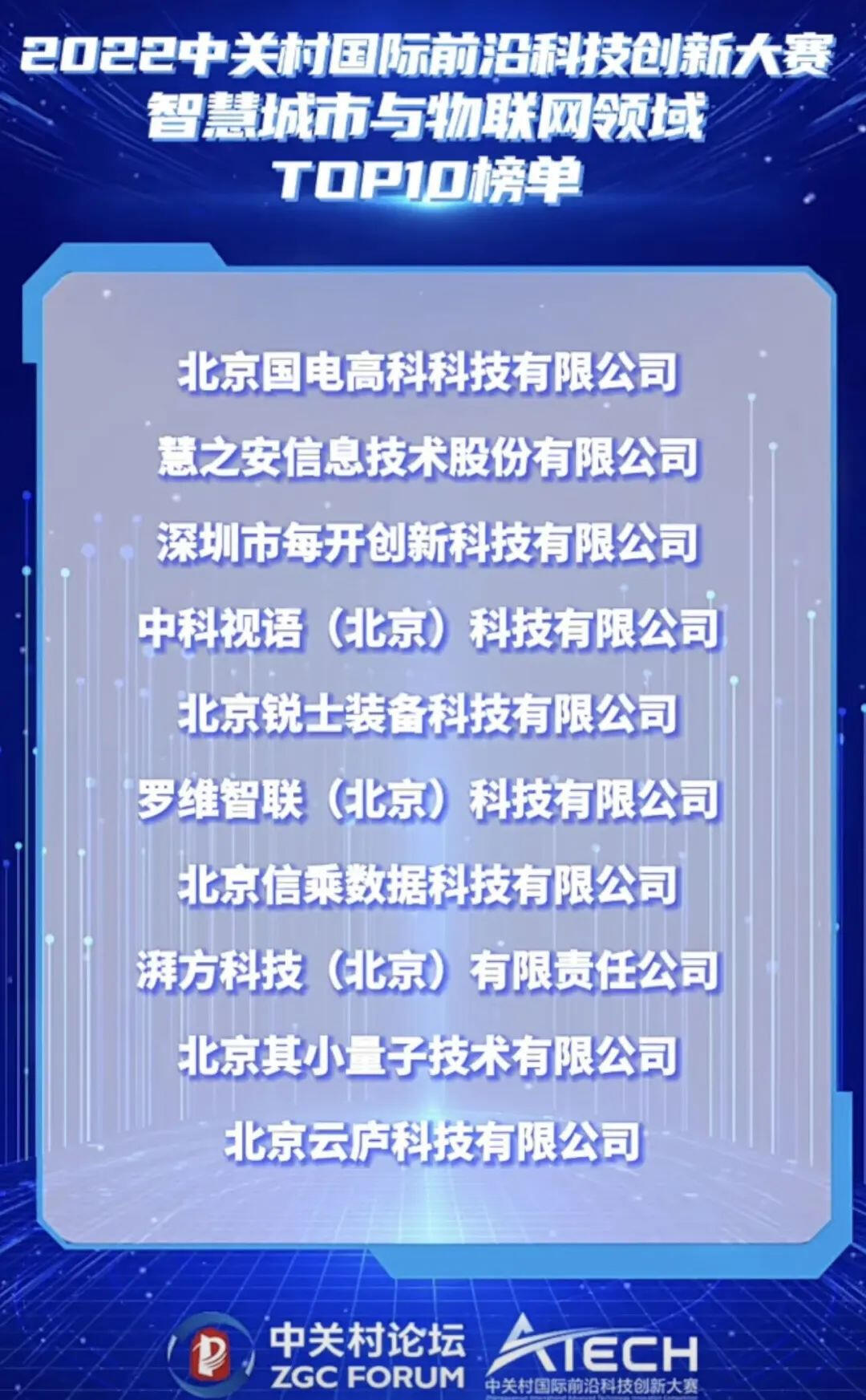 喜报丨慧安股份荣获2022中关村国际前沿科技创新大赛智慧城市与物联网领域决赛TOP10!