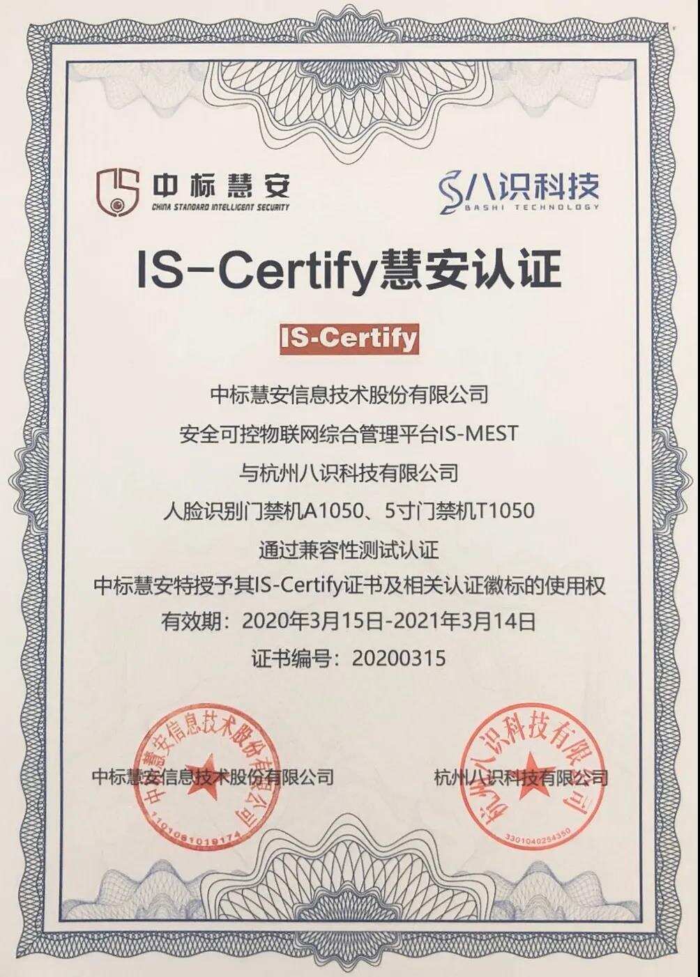 杭州八识科技有限公司IS-Certify慧安认证证书