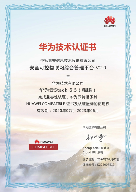 近日,中标慧安“安全可控物联网综合管理平台”系列通过华为技术有限公司产品兼容性认证。此次认证的产品是中标慧安视频综合管理平台IS-MEST V2.0。